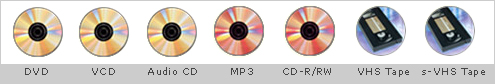 DVD VHS COMBO Player has the ultimate in versatility and media compatibility. It can play not only Disc Media such as DVD, VCD, Audio-CD, CD-R*, CD-RW, and MP3 discs, but also various Tape Media like VHS, and S-VHS tape. It satisfies the requirements multi-media playback, and all within one player. *CD-R: CD-DA and VCD recorded CD-R discs are playable. |