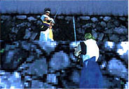 with one character running at top speed to attack a stationary foe. The