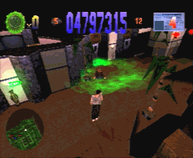 | Full screen 3-D action as you fight to rescue innocent hostages in a skyscraper wired to explode! |