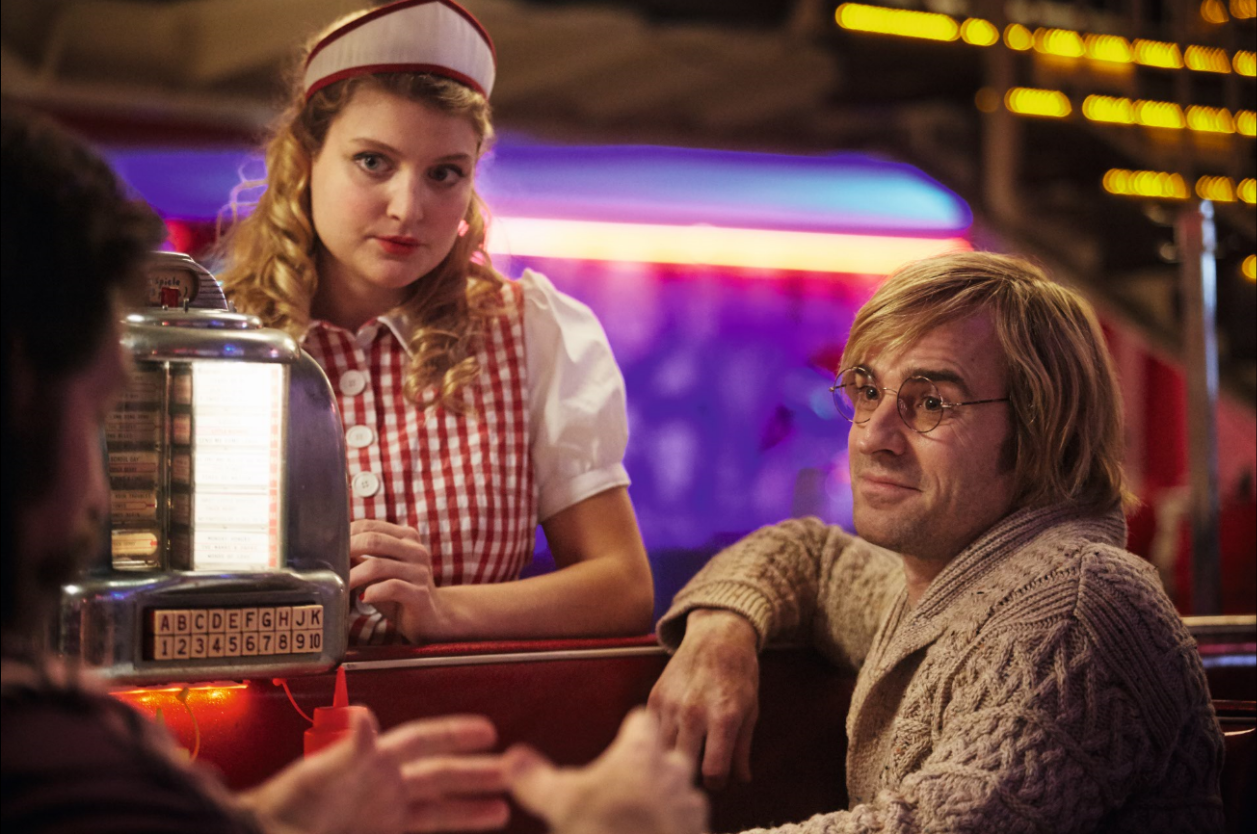 After several early scenes of drippy, melodramatic flirting that would make Tommy Wiseau cringe, Leo sets out on a mission to find his missing girlfriend, a blue-haired cocktail waitress named Naadirah (Seyneb Saleh, whose acting is ridiculously, terribly over the top). Meanwhile, Cactus Bill (Paul Rudd, sporting an absurdly huge handlebar mustache) is an AWOL American soldier who does under-the-table surgeries for the mob in the hopes of getting papers for him and his daughter to return home. His friend Duck Teddington (Justin Theroux in an insanely bad wig) is also around, for reasons that become horrifyingly clear as the movie progresses.